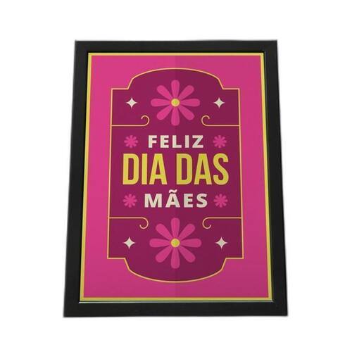 Com moldura preta, feita com madeira de reflorestamento.