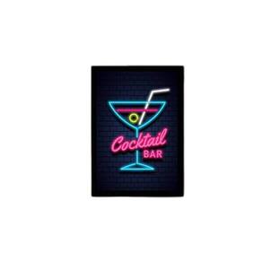 Quadro decorativo copo cocktail bar simulando neon ii 45x34cm Tamanho: a3 45 x 34 Acabamento: película de acetato Moldura: madeira branca Informações do produto