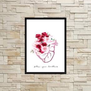 Quadro coração com flores frase follow 24x18cm - com vidro Moldura: madeira branca Informações do produto tire todas as suas dúvidas no descritivo abaixo: decoração para quarto, sala, cozinha, escritório, área gourmet e muito mais. Chega de paredes vazias medidas - cada peça tem 24x18cm a5 . Material do papel - papel fotográfico brilhante de altíssima resolução acabamento - todos os quadros são acompanhados de vidro para proteção da imagem. - moldura em madeira maciça na cor preta e pendurador . - os quadros são embalados de forma segura com plástico bolha com camada dupla de acordo com o tamanho dos quadros. - de 3 meses. Meu quadro chegou. Como posso fixá-lo Você precisa apenas de um martelo e um prego, pois os quadros já vão acompanhados de penduradores. Esta é a forma mais indicada. Como posso limpar meu quadro A limpeza é feita como um móvel comum da sua casa. Apenas um pano seco ou espanador são suficientes para tal Marca: Não Informado