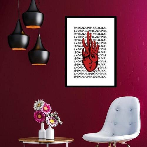 Quadro coração deixa queimar - 60x48cm Moldura: madeira branca Informações do produto tire todas as suas dúvidas no descritivo abaixo: decoração para quarto, sala, cozinha, escritório, área gourmet e muito mais. Chega de paredes vazias medidas - cada peça tem 60x48cm . Material do papel - papel fotográfico brilhante de altíssima resolução acabamento - todos os quadros são acompanhados de vidro para proteção da imagem. - moldura em madeira maciça na cor preta ou branca conforme produto escolhido e pendurador. - paspatur branco com 7cm de largura - os quadros são embalados de forma segura com plástico bolha com camada dupla de acordo com o tamanho dos quadros. Garantia - garantia de 3 meses. Meu quadro chegou. Como posso fixá-lo Você precisa apenas de um martelo e um prego, pois os quadros já vão acompanhados de penduradores. Esta é a forma mais indicada. Como posso limpar meu quadro A limpeza é feita como um móvel comum da sua casa. Apenas um pano seco ou espanador são suficientes para tal