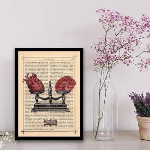 Itens inclusos 01 Quadro Decorativo Coração E Cérebro Na Balança 45 x 34 cm