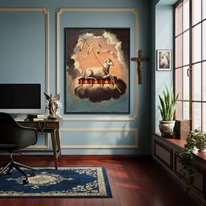 Quadro Cordeiro de Deus que Tira o Pecado do Mundo -70x50cm - Cor: Moldura Branca