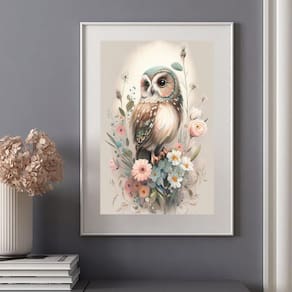 Quadro coruja com flores - 60x48cm