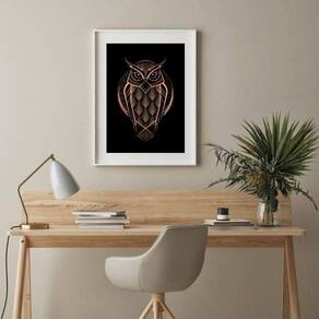 Quadro coruja geométrica - 60x48cm Moldura: madeira preta Informações do produto tire todas as suas dúvidas no descritivo abaixo: decoração para quarto, sala, cozinha, escritório, área gourmet e muito mais. Chega de paredes vazias medidas - cada peça tem 60x48cm . Material do papel - papel fotográfico brilhante de altíssima resolução acabamento - todos os quadros são acompanhados de vidro para proteção da imagem. - moldura em madeira maciça na cor preta ou branca conforme produto escolhido e pendurador. - paspatur branco com 7cm de largura - os quadros são embalados de forma segura com plástico bolha com camada dupla de acordo com o tamanho dos quadros. Garantia - garantia de 3 meses. Meu quadro chegou. Como posso fixá-lo Você precisa apenas de um martelo e um prego, pois os quadros já vão acompanhados de penduradores. Esta é a forma mais indicada. Como posso limpar meu quadro A limpeza é feita como um móvel comum da sua casa. Apenas um pano seco ou espanador são suficientes para tal
