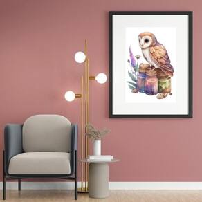 Quadro coruja mágica aquarela - 60x48cm Moldura: madeira branca Informações do produto tire todas as suas dúvidas no descritivo abaixo: decoração para quarto, sala, cozinha, escritório, área gourmet e muito mais. Chega de paredes vazias medidas - cada peça tem 60x48cm . Material do papel - papel fotográfico brilhante de altíssima resolução acabamento - todos os quadros são acompanhados de vidro para proteção da imagem. - moldura em madeira maciça na cor preta ou branca conforme produto escolhido e pendurador. - paspatur branco com 7cm de largura - os quadros são embalados de forma segura com plástico bolha com camada dupla de acordo com o tamanho dos quadros. - de 3 meses. Meu quadro chegou. Como posso fixá-lo Você precisa apenas de um martelo e um prego, pois os quadros já vão acompanhados de penduradores. Esta é a forma mais indicada. Como posso limpar meu quadro A limpeza é feita como um móvel comum da sua casa. Apenas um pano seco ou espanador são suficientes para tal