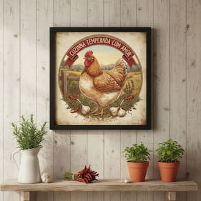 Quadro Country Cozinha Tempero Amor 33x33 Mold Branca Vidro