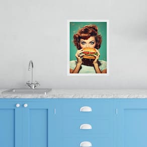 Quadro cozinha retro pin up hamburger 45x34cm - com vidro Cor: moldura branca Informações do produto tire todas as suas dúvidas no descritivo abaixo: decoração para quarto, sala, cozinha, escritório, área gourmet e muito mais. Chega de paredes vazias medidas - cada peça tem 45x34cm a3 . Material do papel - papel fotográfico brilhante de altíssima resolução acabamento - todos os quadros são acompanhados de vidro para proteção da imagem. - moldura em madeira maciça na cor preta ou branca conforme produto escolhido e pendurador . - os quadros são embalados de forma segura com plástico bolha com camada dupla de acordo com o tamanho dos quadros. - de 3 meses. Meu quadro chegou. Como posso fixá-lo Você precisa apenas de um martelo e um prego, pois os quadros já vão acompanhados de penduradores. Esta é a forma mais indicada. Como posso limpar meu quadro A limpeza é feita como um móvel comum da sua casa. Apenas um pano seco ou espanador são suficientes para tal