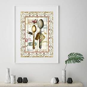 Quadro cozinha talheres vintage - 60x48cm Cor: moldura branca Informações do produto tire todas as suas dúvidas no descritivo abaixo: decoração para quarto, sala, cozinha, escritório, área gourmet e muito mais. Chega de paredes vazias medidas - cada peça tem 60x48cm . Material do papel - papel fotográfico brilhante de altíssima resolução acabamento - todos os quadros são acompanhados de vidro para proteção da imagem. - moldura em madeira maciça na cor preta ou branca conforme produto escolhido e pendurador. - paspatur branco com 7cm de largura - os quadros são embalados de forma segura com plástico bolha com camada dupla de acordo com o tamanho dos quadros. - de 3 meses. Meu quadro chegou. Como posso fixá-lo Você precisa apenas de um martelo e um prego, pois os quadros já vão acompanhados de penduradores. Esta é a forma mais indicada. Como posso limpar meu quadro A limpeza é feita como um móvel comum da sua casa. Apenas um pano seco ou espanador são suficientes para tal Marca: Não Informado