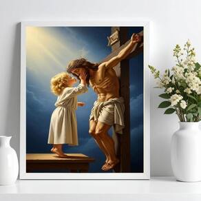Quadro criança beijando jesus na cruz 24x18cm - com vidro Cor: moldura preta Informações do produto tire todas as suas dúvidas no descritivo abaixo: decoração para quarto, sala, cozinha, escritório, área gourmet e muito mais. Chega de paredes vazias medidas - cada peça tem 24x18cm a5 . Material do papel - papel fotográfico brilhante de altíssima resolução acabamento - todos os quadros são acompanhados de vidro para proteção da imagem. - moldura em madeira maciça na cor preta ou branca conforme produto escolhido e pendurador . - os quadros são embalados de forma segura com plástico bolha com camada dupla de acordo com o tamanho dos quadros. - de 3 meses. Meu quadro chegou. Como posso fixá-lo Você precisa apenas de um martelo e um prego, pois os quadros já vão acompanhados de penduradores. Esta é a forma mais indicada. Como posso limpar meu quadro A limpeza é feita como um móvel comum da sua casa. Apenas um pano seco ou espanador são suficientes para tal Marca: Não Informado