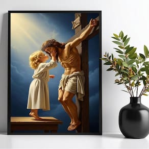 Quadro criança beijando jesus na cruz 33x24cm - com vidro Cor: moldura branca Informações do produto tire todas as suas dúvidas no descritivo abaixo: decoração para quarto, sala, cozinha, escritório, área gourmet e muito mais. Chega de paredes vazias medidas - cada peça tem 33x24cm a4 . Material do papel - papel fotográfico brilhante de altíssima resolução acabamento - todos os quadros são acompanhados de vidro para proteção da imagem. - moldura em madeira maciça na cor preta ou branca conforme produto escolhido e pendurador . - os quadros são embalados de forma segura com plástico bolha com camada dupla de acordo com o tamanho dos quadros. - de 3 meses. Meu quadro chegou. Como posso fixá-lo Você precisa apenas de um martelo e um prego, pois os quadros já vão acompanhados de penduradores. Esta é a forma mais indicada. Como posso limpar meu quadro A limpeza é feita como um móvel comum da sua casa. Apenas um pano seco ou espanador são suficientes para tal Marca: Não Informado Ean: 7901039773794