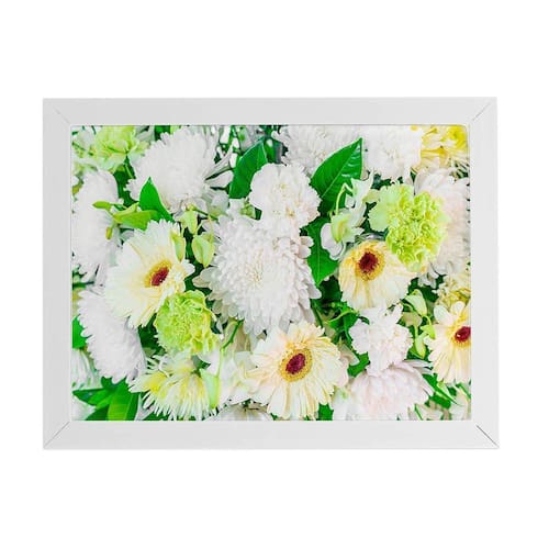 Quadro Crisântemo Branco Flores Foto Moldura Branca 60X40Cm