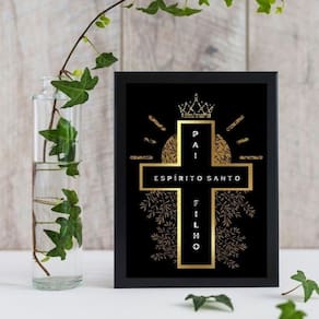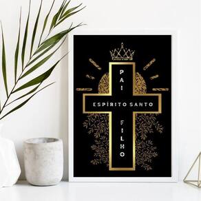 Quadro Cruz Santíssima Trindade 33x24cm - Moldura Branca