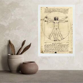 Quadro da vinci o homem vitruviano 45x34cm - com vidro