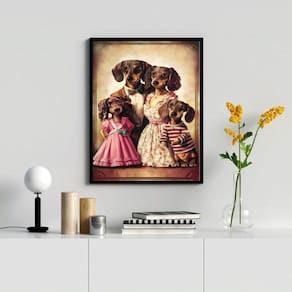Quadro dachshund family 45x34cm Cor: moldura branca Informações do produto tire todas as suas dúvidas no descritivo abaixo: decoração para quarto, sala, cozinha, escritório, área gourmet e muito mais. Chega de paredes vazias. Medidas - cada peça tem 45x34cm a3 . Material do papel - papel fotográfico brilhante de altíssima resolução acabamento - todos os quadros são acompanhados de uma película de acetato para proteção da imagem. - os quadros são embalados de forma segura com plástico bolha com camada dupla de acordo com o tamanho dos quadros. Garantia - garantia de 3 meses. Meu quadro chegou. Como posso fixá-lo Você precisa apenas de um martelo e um prego, pois os quadros já vão acompanhados de penduradores. Esta é a forma mais indicada. Caso prefira, você pode utilizar uma fita dupla face neste caso, sugerimos de alta qualidade para evitar que descole e seu quadro caia . Como posso limpar meu quadro A limpeza é feita como um móvel comum da sua casa. Apenas um pano seco ou espanador são suficientes para tal