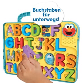 - Aprenda e cante junto com Elmo: o brinquedo educativo Sesame Street Elmo's Learning Letters toca a "Canção do Alfabeto" e frases divertidas do Elmo para cada letra do alfabeto. As crianças vão adorar aprender com Elmo e este quadro de atividades em forma de ônibus!