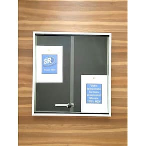 Quadro De Avisos Expositor Bijuterias Porta Vidro TemperadoQuadro de avisos com porta de vidro temperado e fechadura com duas chaves, ideal para protegerdocumentos e como expositor de produtos sem a adulteração de outras pessoas.INDICADO PARA:Condomínio, Portaria, Escritório, Escola;Museu, Piercing, Bijuterias;Outros estabelecimentos.MATERIAL:100% MDF TX 15mm: o máximo em qualidade, durabilidade e resistência a riscos.Vidro Temperado: 5x mais resistente que o vidro comum.Fechadura com duas chaves.Trilho Plástico.Feltro.DIMENSÕES QUADRO:Comprimento: 60 ; Altura: 64 ; Profundidade: 7.Profundidade Interna: 5.Já enviamos montada. Marca: Sr Fabrica De Moveis