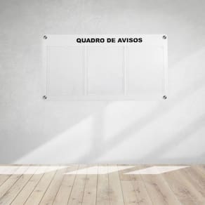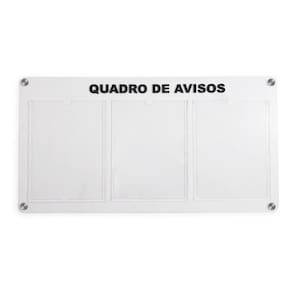 Quadro de avisos gestão à vista 3 displays A4 Branco com espaçadores O quadro de gestão à vista é indicado para exposição de avisos e informativos de forma fácil e prática. A peça é fabricada em MDF com displays em acrílico e acompanha espaçadores. A troca dos informativos é fácil e simples sem necessitar de outros artifícios para fixação. Produto: Quadro de avisos gestão à vista 3 displays para exposição tamanho A4 1 peça Características: Corte feitos com perfeição Acrílico virgem de alta qualidade e MDF Produzido pela Visual Laser Acrílicos Tamanho: Altura: 42 cm Largura: 80 cm Conservação: Para melhor conservação de qualquer material plástico e de seu Display, ao realizar a limpeza não utilize álcool puro ou solventes, apenas um pano úmido e macio é suficiente. Garantia: Garantimos que a peça chegará livre de danos, se necessário efetuamos a troca. Ean: 7908097605067