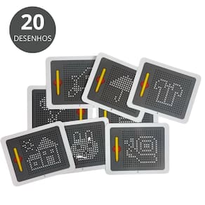 Conteúdo da Embalagem: 01 Quadro Desenho Magnético, 01 Caneta Magnética, 10 Cartões com Modelos de Desenhos Frente e Verso Total: 20 Desenhos