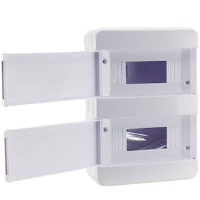 Características técnicas: - Material: Termoplástico de alta resistência auto extinguível - Gabinete: Plástico PS - Portas: Com abertura de 180 - Entradas: Entrada de cabos (eletrodutos) nas 4 faces.