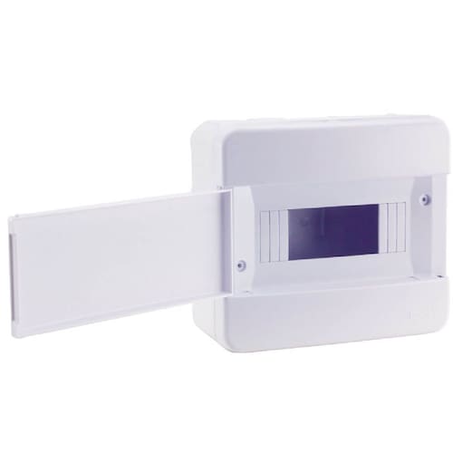Quadro de Distribuição de Sobrepor 8 Disjuntores DIN com Barramento - 600300027 - FORCELINE Características básicas: - Formato de Sobrepor - Grau de Proteção IP40 - Não propaga chama - Branco Características técnicas: - Material: Termoplástico de alta resistência auto extinguível - Gabinete: Plástico PS - Portas: Com abertura de 180° - Entradas: Entrada de cabos (eletrodutos) nas 4 faces. Itens inclusos: - Quadro de Distribuição de Sobrepor Disjuntores DIN com Barramento * Imagens meramente ilustrativas