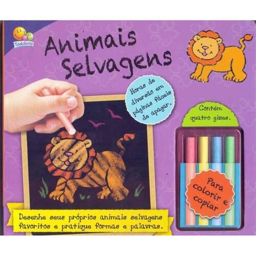 A prática leva à perfeição! Quatro gizes coloridos e páginas tipo lousa reúnem horas de diversão de atividades para escrever e apagar. As crianças vão adorar copiar e desenhar uma série inteira de animais selvagens, com alguns treinos de aprendizagem inicial de letras e números.
