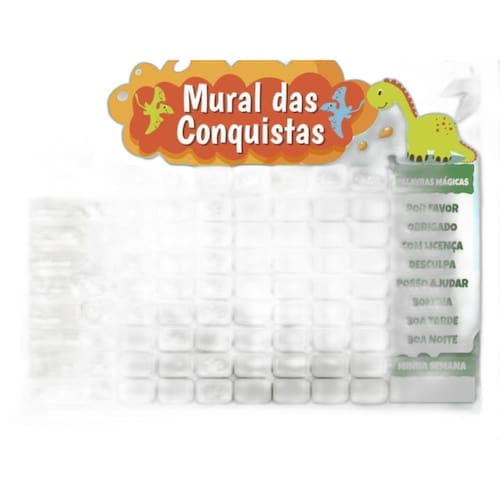 Incluso: Quadro tema dinossauros; Imãs de tarefas; Imãs em branco para escrever outras tarefas ou o nome da criança ; 1 manual.
