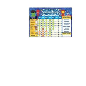 Incluso: Quadro tema heróis; Imãs de tarefas; Imãs em branco para escrever outras tarefas ou o nome da criança ; 1 manual.