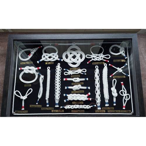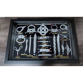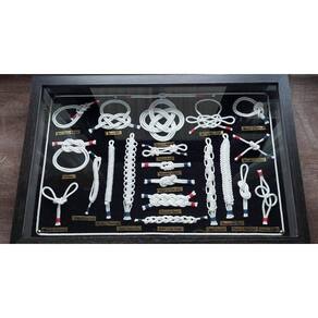 Quadro de Nós Náutico Simples Fundo Preto único - Características Gerais do Produto: Acabamento / funcionalidades: Produzido artesanalmente Material: Moldura de MDF; Vidro frontal 3mm; Fundo aveludado; Plaqueta metálica dourada com as identificações Medidas: A: 32 x L: 49 x P: 6cm Observações: Inclui suporte para pendurar : 12 Meses de de Fábrica Marca: Não Informado Ean: 7898574063506