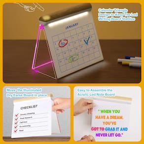 Portátil e pronto para usar em qualquer lugar Seu tamanho compacto de 25,4 cm torna este quadro de notas de LED com cores leve e portátil, para que você possa usá-lo em qualquer lugar. Seja anotando ideias, exibindo planos ou usando-o como uma prancheta iluminada para crianças, este quadro de mensagens de acrílico regravável atende às suas necessidades em movimento.