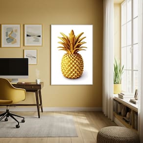Quadro Decor Abacaxi Dourado 70x50cm Mold Preta