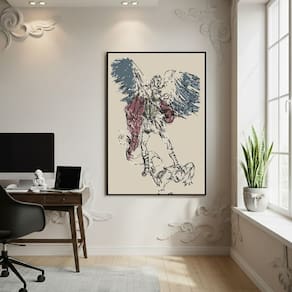 Quadro Decor Anjo São Miguel Abstrato 70x50cm Mold Branca