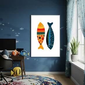Quadro Decor Arte De Peixes Estampados 70x50cm Mold Branca