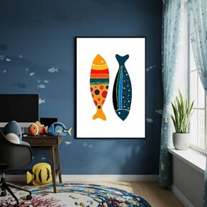 Quadro Decor Arte De Peixes Estampados 70x50cm Mold Preta