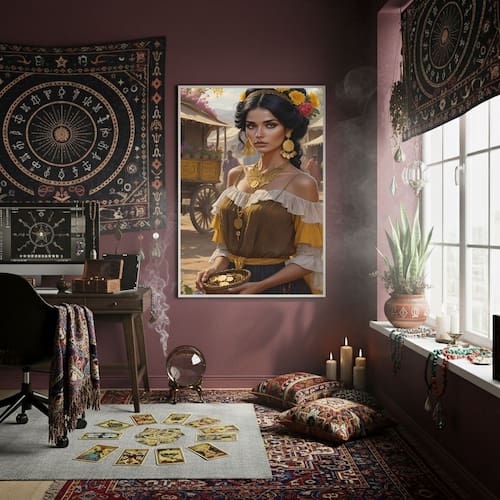 Quadro Decor Cigana Com Pote De Ouro 70x50cm Mold Branca