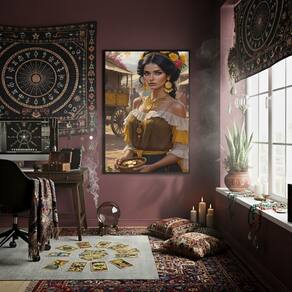 Quadro Decor Cigana Com Pote De Ouro 70x50cm Mold Preta