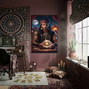 Quadro Decor Cigano Com Bola De Cristal 70x50cm Mold Branca