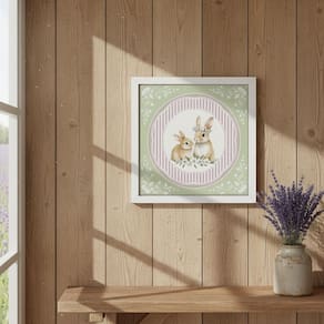 Quadro Decor Coelhinhos Vintage 33x33cm Mold Branca Vidro