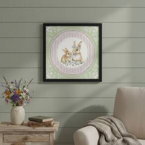 Quadro Decor Coelhinhos Vintage 33x33cm Mold Preta
