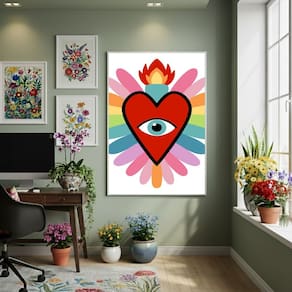 Quadro Decor Coração Com Olho No Centro 70x50cm Mold Branca