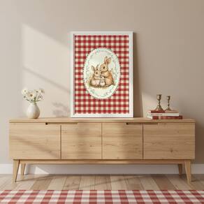 Quadro Decor Família Coelhinhos Vintage 24x18cm Mold Preta Vidro
