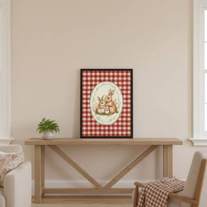 Quadro Decor Família Coelhinhos Vintage 33x24cm Mold Preta