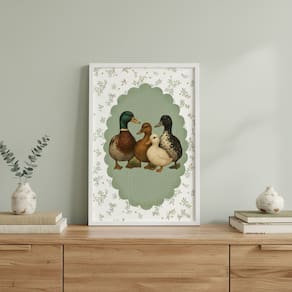 Quadro Decor Família Patinhos Vintage 24x18cm Mold Branca Vidro