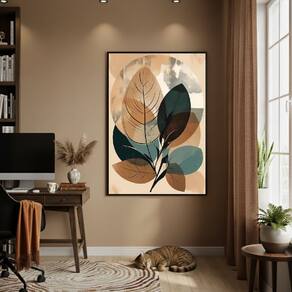 Quadro Decor Folhagens Tons De Bege 70x50cm Mold Preta