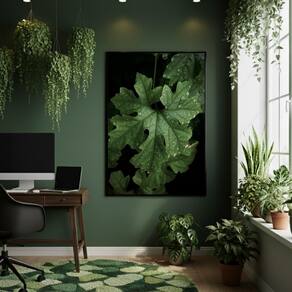 Quadro Decor Folhas Textura Escura 70x50cm Mold Branca