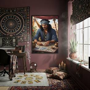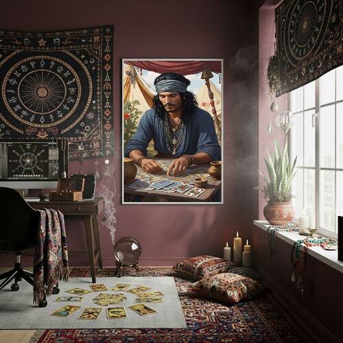 Quadro Decor Homem Cigano Lendo Tarot 70x50cm Mold Branca