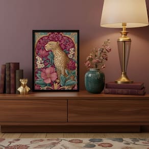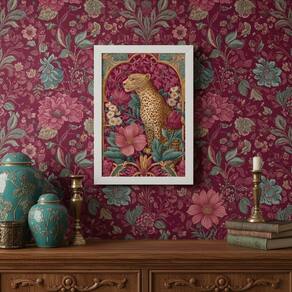 Quadro Decor Leopardo Luxuoso Floral 24x18cm Mold Branca Vidro