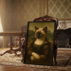 Quadro Decor Mona Lisa Mona Cat 45x34cm Mold Preta Vidro