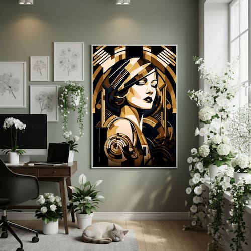 Quadro Decor Mulher Art Deco 70x50cm Mold Preta