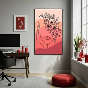Quadro Decor Mulher De Flores 70x50cm Mold Preta