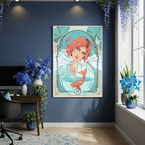 Quadro Decor Mulher De Peixes 70x50cm Mold Preta